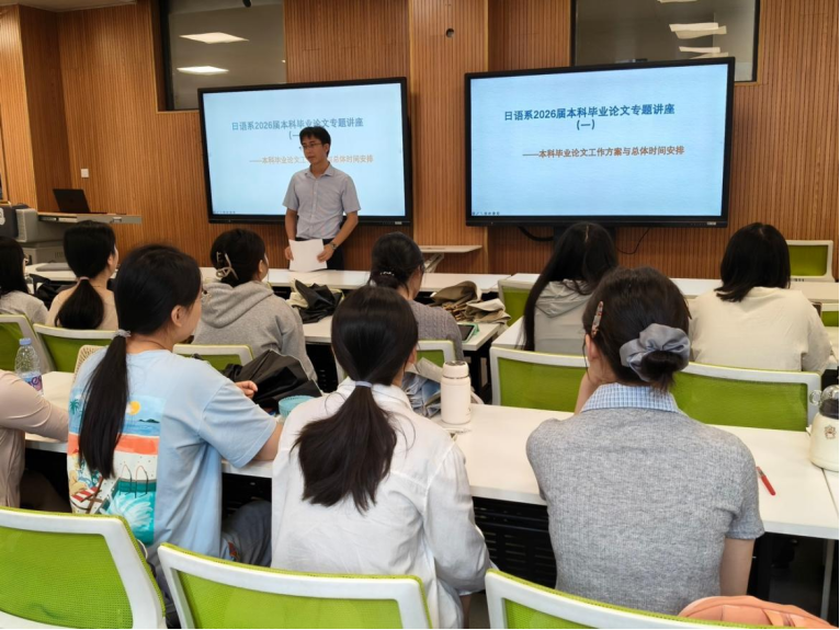 为加强学生学术道德和学术规范教育,强化学生的毕业论文质量意识,日语系全体教师于9月24日面向2026届毕业生开展了毕业论文专题讲座。