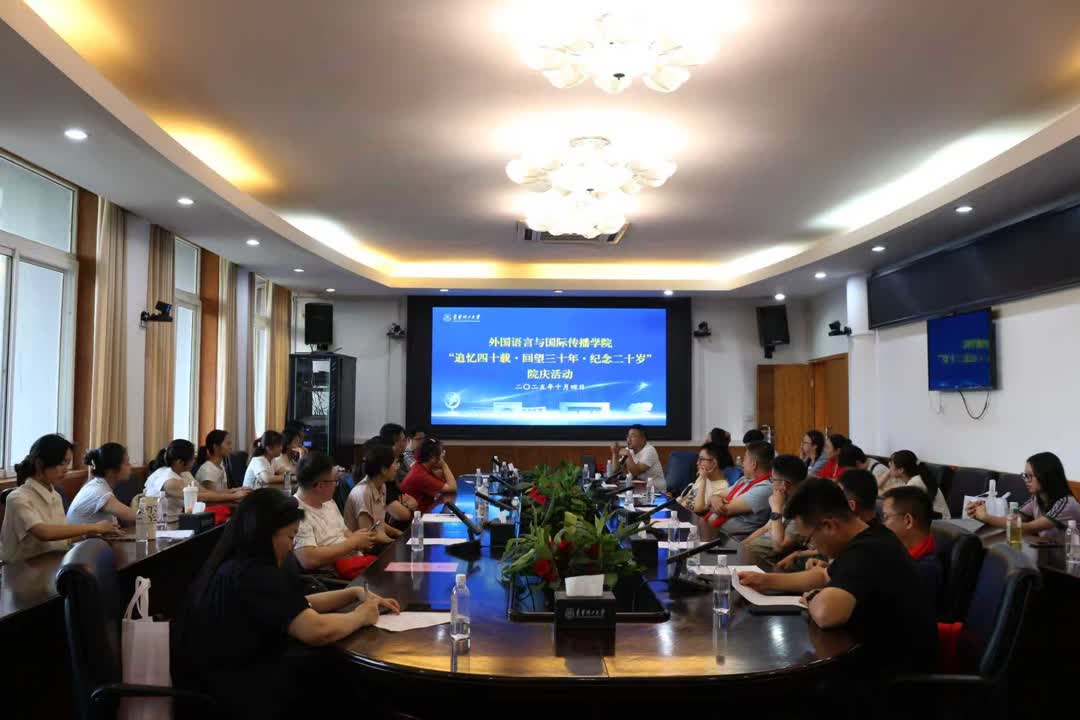 当天下午举办座谈与对话学弟学妹会议。夏菲发表致辞,他向返校校友致以诚挚欢迎,介绍学校及外国语言与国际传播学院发展历程与成果,他强调,学校发展成果丰硕,离不开校友鼎力支持,期盼校友未来携手推动学院、学校迈向新台阶。