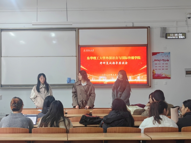 为助力考研学子备战复试,明晰备考思路,3月21日,外国语言与国际传播学院举办考研复试指导座谈会。本次座谈会由学院学团办与英语语言文学系联合组织,系部教师代表尧可、石立林及毕业班辅导员参加,特邀2021级考研上岸学生邹思颖、孔嘉琪现场分享经验。
