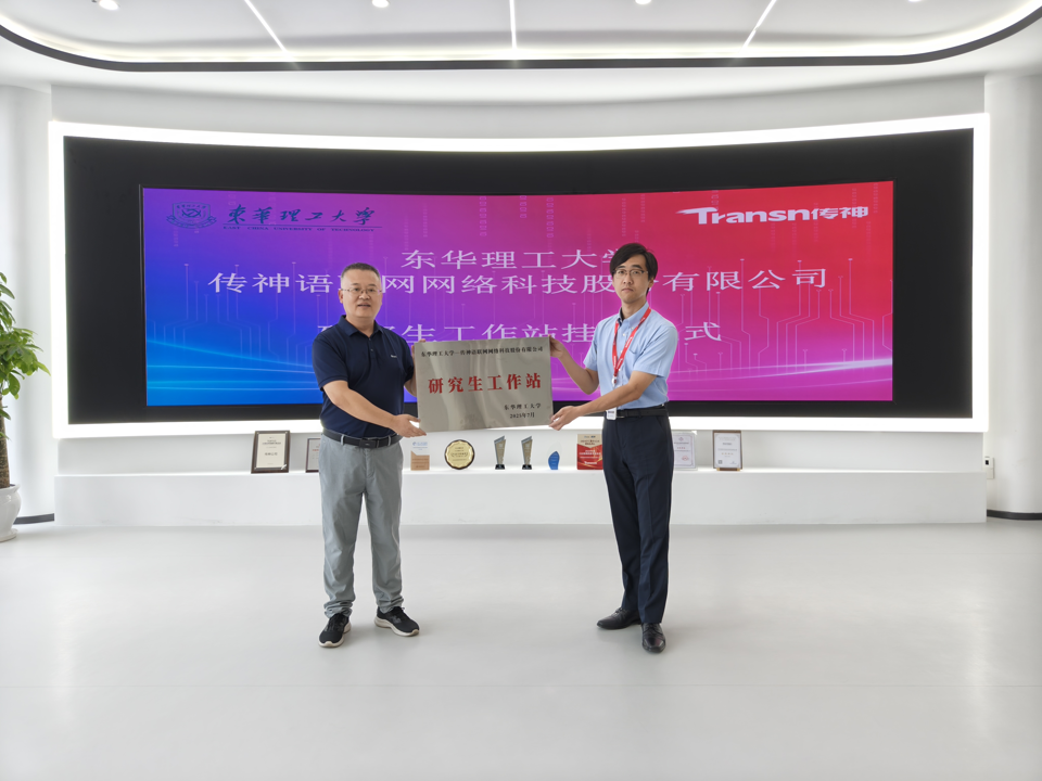 7月18日上午10点,东华理工大学翻译硕士点负责人吴冰博士、传神语联网网络科技股份有限公司朱紫阳经理等人,在武汉传神总部举行了“东华理工大学—传神语联网网络科技股份有限公司”研究生工作站挂牌仪式。